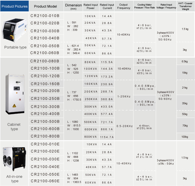 گرمایش القایی سری CR2100 با یک رابط انسان و ماشین (HHT) با دقت بالا برای عملکرد آسان و حفاظت از خطا ارائه می شود. این دستگاه برای دستیابی به بالاترین سطح دقت و ایمنی در فرآیندهای عملیات حرارتی فلز طراحی شده است. همچنین یکنواختی و تکرارپذیری دما را ارائه می دهد و آن را برای تولید انبوه مناسب می کند. علاوه بر این، این دستگاه قادر است فلزات را به سرعت و کارآمد گرم کند و در عین حال محافظت عالی در برابر شرایط بیش از حد دما را فراهم می کند. کویل القایی با عملکرد بالا، انتقال حرارت کارآمد و قابل اعتماد را فراهم می کند و سیستم خنک کننده پیشرفته آن ایمنی و قابلیت اطمینان فرآیند عملیات حرارتی را تضمین می کند.